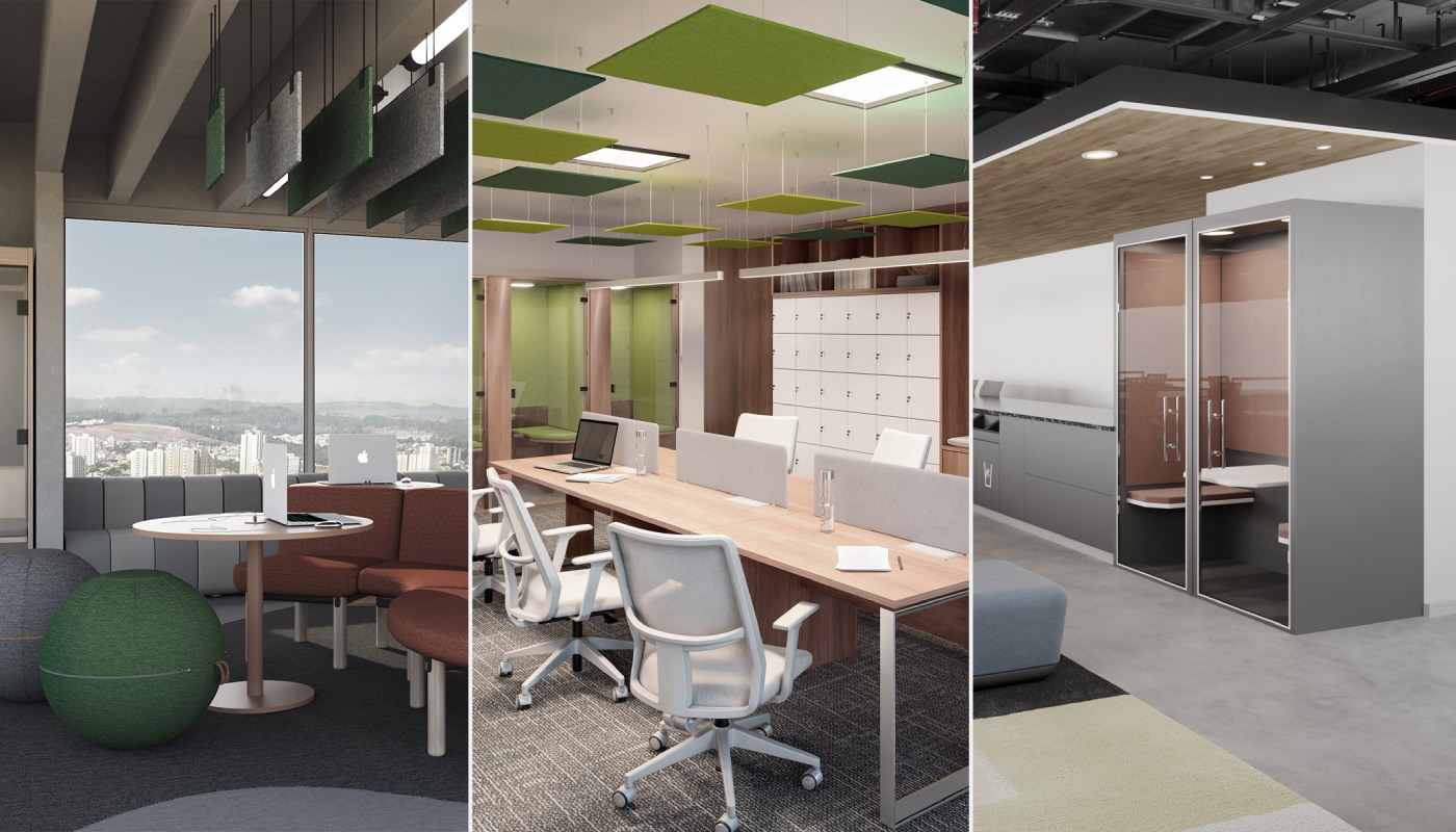 Para resolver isso, empresas inovadoras estão criando zonas de concentração com cabines de privacidade, sofás com encosto alto, mobiliário individualizado e materiais que absorvem ruído sem isolar o colaborador completamente.
